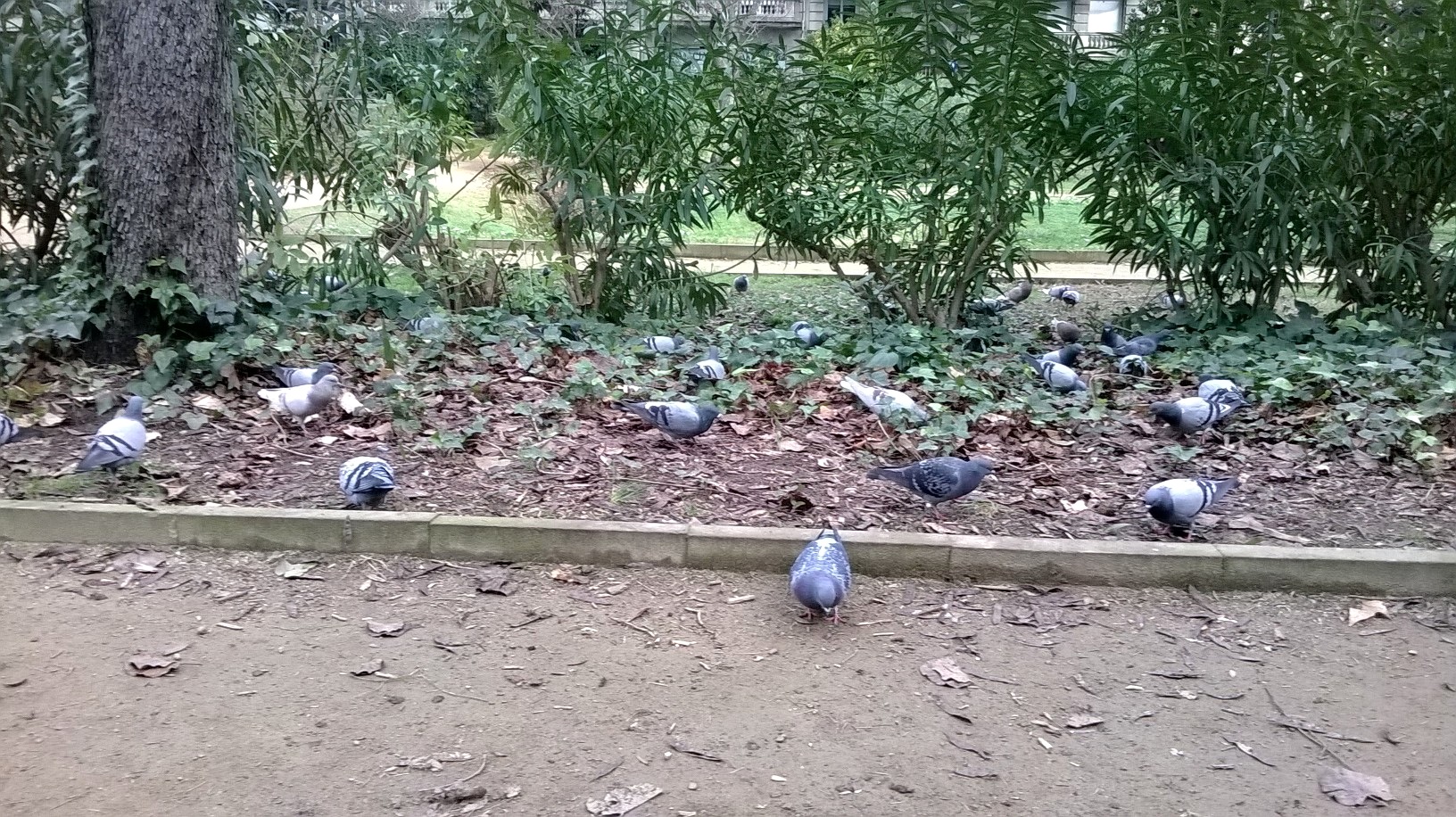 [ENG] In Barcelona Turo Park, listening to the sound of pigeons eating and taking off to fly.