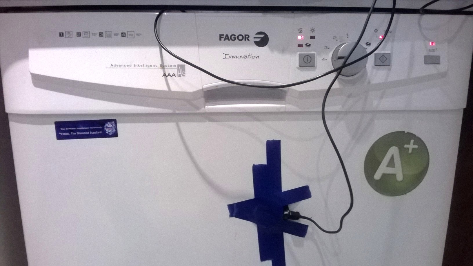 Sinfonía Nº 1 para 12 tenedores, 10 cuchillos, 9 cucharas, 13 platos pequeños, 15 platos grandes, 7 platos soperos y 23 vasos, 5 de ellos de plástico. Agua dura, programa ECO y a dos micros de contacto. Fragmento.