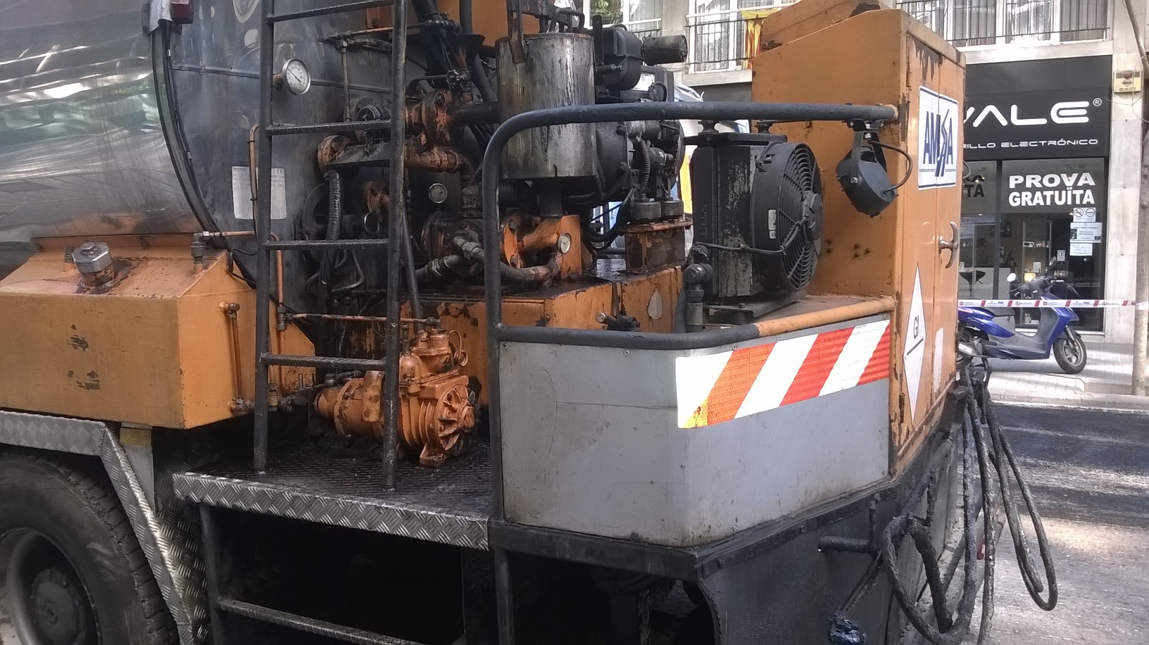 [ENG] Sound of one of the trucks that asphalted streets. With binaural mics.