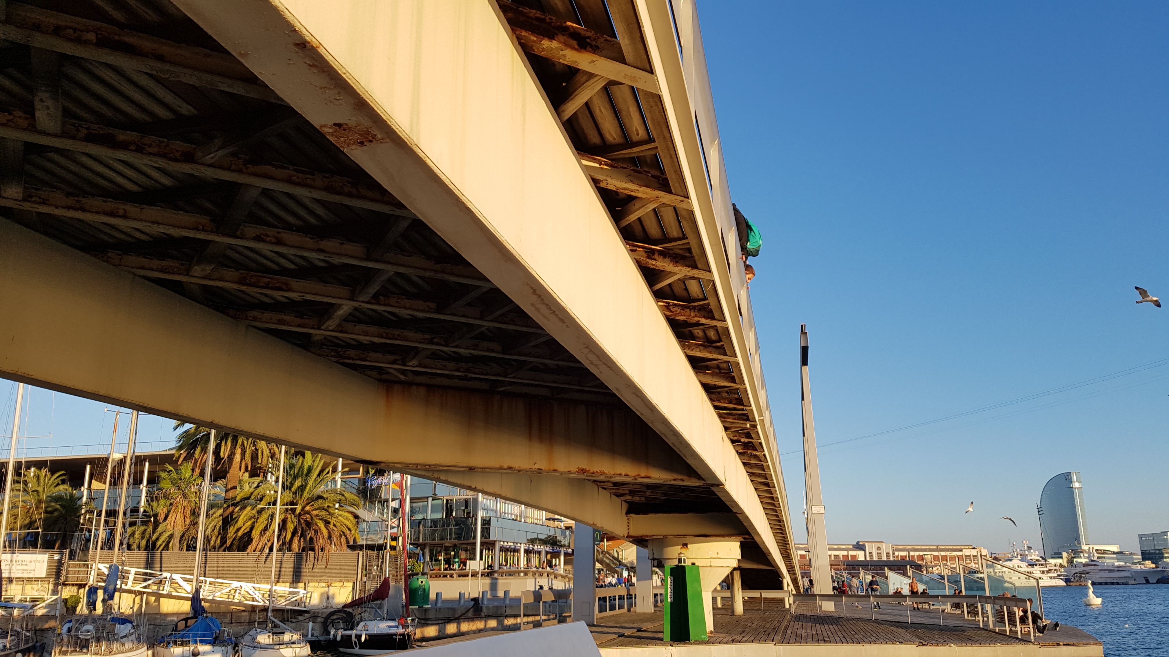 [ESP] En el Port de Barcelona hay un puente que lleva directamente a una conocida zona comercial. Grabar el sonido desde debajo te hace dar cuenta de la cantidad de gente que pasa.