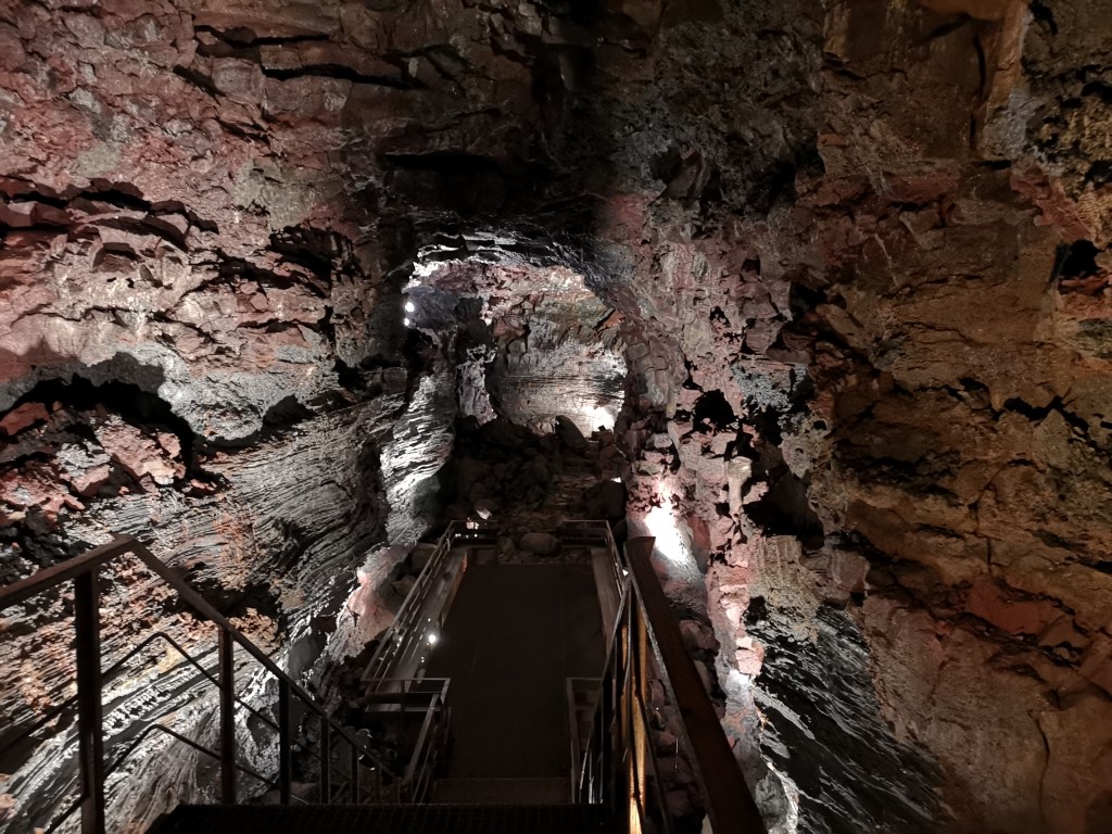 [CAT] L’activitat volcànica d’Islàndia és i ha estat enorme en els últims milers d’anys. Al sud de l’illa es troba Raufarhólshellir, el quart tub de lava més llarg d’Islàndia que en els seus primers metres es pot visitar amb ajuda d’un guia. Només en aquest espai hi ha un llums i de tant en tant unes escales que ens ajuden a contemplar les parets del túnel. En la gravació d’avui es pot escoltar el moment en el qual el guia ens anima que tanquem els ulls i que abans ens assegurem que els llums dels nostres cascs i dels nostres mòbils estiguin apagats (fins al més lleu led). En el moment que tot el grup tenia els ulls tancats s’apaguen els llums i la reacció de la gent és la de la incredulitat de veure que no veus absolutament res. Res és res. No serveix de res obrir els ulls. No es veuen ni les mans a pocs centímetres dels ulls. I també m’he animat a publicar aquest moment perquè just després ens demana que estiguem en silenci absolut. I en aquest silenci t’adones que el túnel no té res de silenciós.