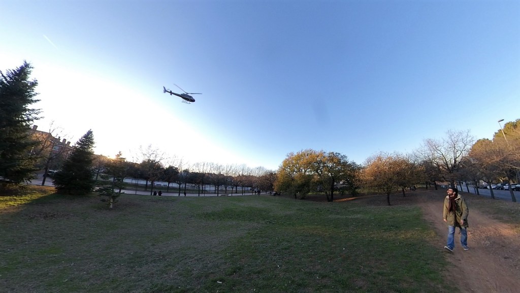 Para comparar los sonidos, cuando hagas «play» sonará primero la toma estéreo y después la binaural. En el corte también escucharás un grupo de música cantando y es que resulta que en este helicóptero estaban llegando los Reyes Magos y en tierra habían un montón de niños y mucha animación en forma de música.