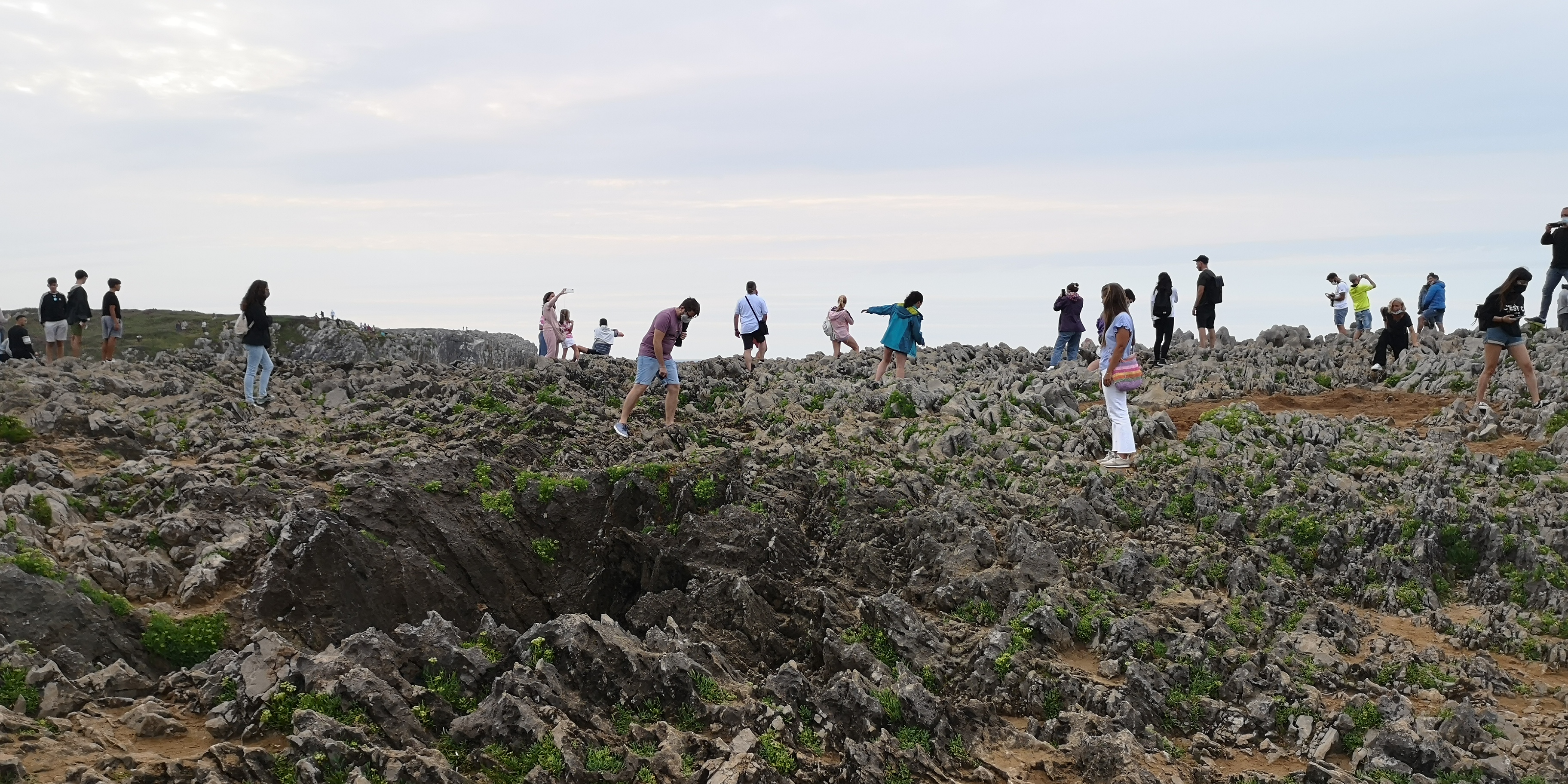 [CAT] Aquests forats, que em van recordar a el gran pou de Carkoon de «L’imperi contraataca», no amaguen enormes criatures sinó el poder de l’aigua al seu interior. A Llanes de Pría es troben uns bufaderos o geysers marins totalment espectaculars. O almenys a mi m’ho van semblar. El so que podem escoltar en aquesta zona en el moment en què la marea és alta és culpidor, potent i t’arriba a el fons de el cos. Això saps que serà així en el moment que et vas acostant i vas escoltant respirar a la terra. Per sota, l’aigua s’eleva per unes xemeneies naturals i arriba de vegades a la superfície en forma d’aigua polvoritzada. Aconsello que aquest so s’escolti amb uns bons auriculars o altaveus.