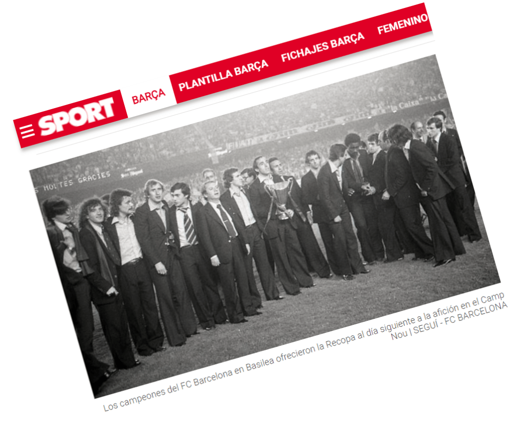 Just quan els jugadors donaven per acabada la festa, un grup d’aficionats ha saltat al terreny de joc per abraçar i mantejar al jugador Johann Neeskens. Quan aconsegueix escapolir-se es dona per finalitzat l’acte i Enric Frigola tanca també la transmissió d’aquesta rebuda que va fer la ciutat de Barcelona a l’equip.