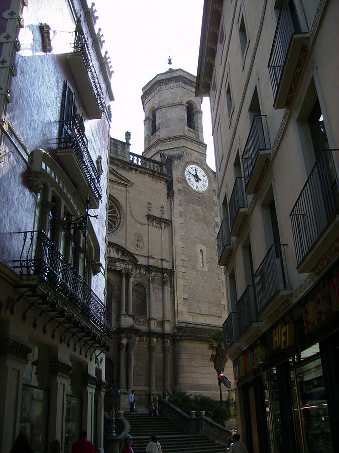 [ENG] The atmosphere at nine o’clock in the morning in Olot sounds more or less like this in pedestrian streets only traveled by trucks that carry goods to the shops that are there. The nine bells come out of the bell tower of the Church of Sant Esteve, which, as in some cities or towns, does so twice, although on the second occasion without the bells that indicate the quarters of an hour. I found it curious to read that the watches were twisted in the gale of 2016, they were made of iron and were replaced by lighter ones made of steel.