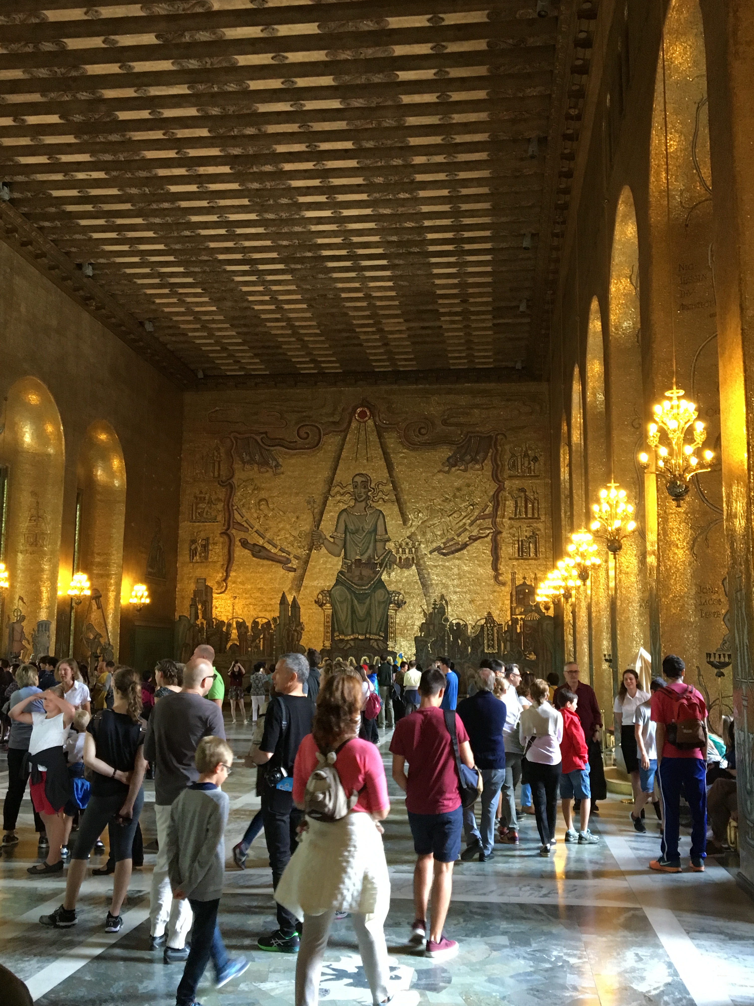 [CAT] Totes les guies turístiques recomanen l’Ajuntament d’Estocolm i la primera característica que comuniquen és la gran Sala Blava, seu del banquet anual dels Premis Nobel. L’espai és realment bonic i el fet que estigui ubicat a una de les centenars d’illes li confereix una gran personalitat. De tota manera, jo estava interessat en com sonaven les campanes sobretot per confirmar si estaven a l’alçada de la seva enorme torre. Per això vaig voler acostar-me a les 12 en punt del migdia per comprovar-ho. Tinc alguns sons més d’Estocolm.