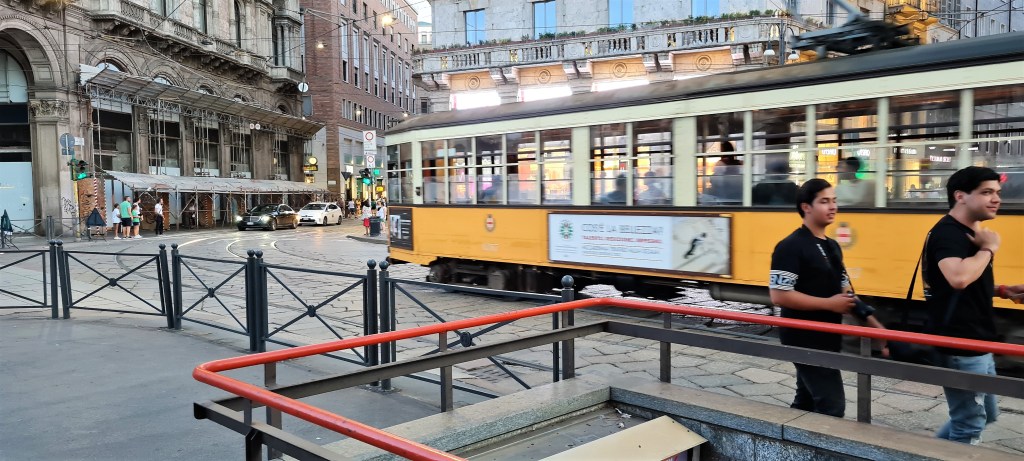 [ESP] Si en una ciudad he tenido la sensación que los tranvías iban a toda velocidad, ha sido en Milán. Qué auténtica barbaridad verlos pasar y preocuparte por si descarrilan en la siguiente curva. Reconozco que tengo una visión un poco nostálgica de los tranvías. Me gustan cuando puedes subir a ellos y observar tranquilamente todo el exterior y los detalles del interior. Pero en Milán es imposible. No lo critico. Únicamente explico lo que veo y lo que oigo. En este momento sonoro se puede escuchar un primer tranvía más antiguo y otro segundo un poco más moderno. Otra de las curiosidades del sonido es como, poco a poco, los coches eléctricos y también las bicicletas van tomando las grandes ciudades dejando atrás los motores de explosión y dejando escuchar la rozadura de los neumáticos en los adoquines. Por cierto, que bonitos que son los adoquines en las ciudades y que pena que en una ciudad como Barcelona hayan desaparecido. Tengo unos cuantos tranvías en el mi [espaciosonante].