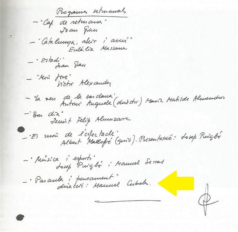 El programa s’emetia a la graella de cap de setmana tal com indica aquesta fotografia del llibre «Ràdio 4. La primera en català» de Pere Font.