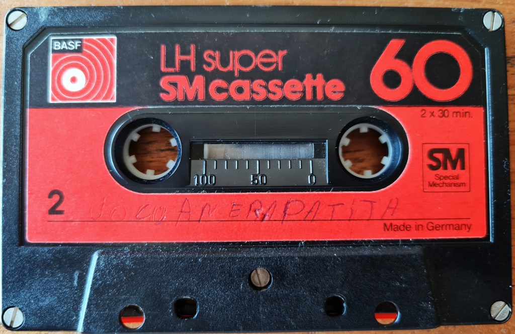 M’he trobat una cinta interessant. La marca del casset és «BASF LH super SM cassette» que es va fabricar fins a l’any 1976. Sempre que trobo aquestes cintes històriques penso que hi ha alguna possibilitat de trobar una petita fotografia de la societat de finals dels anys setanta i principis dels vuitanta.
