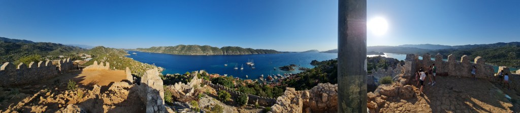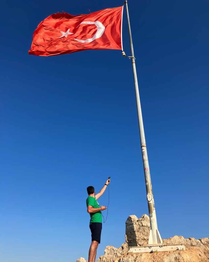 [CAT] Gravar el flamejar d’una bandera sempre m’ha agradat. Però fer-ho no és fàcil. Si oneja és que hi ha vent i si hi ha vent, es cola al micròfon. A Turquia, concretament a la població de Kaleköy hi ha les ruïnes d’un castell on a dalt hi han posat una bandera turca. Les vistes són absolutament espectaculars.