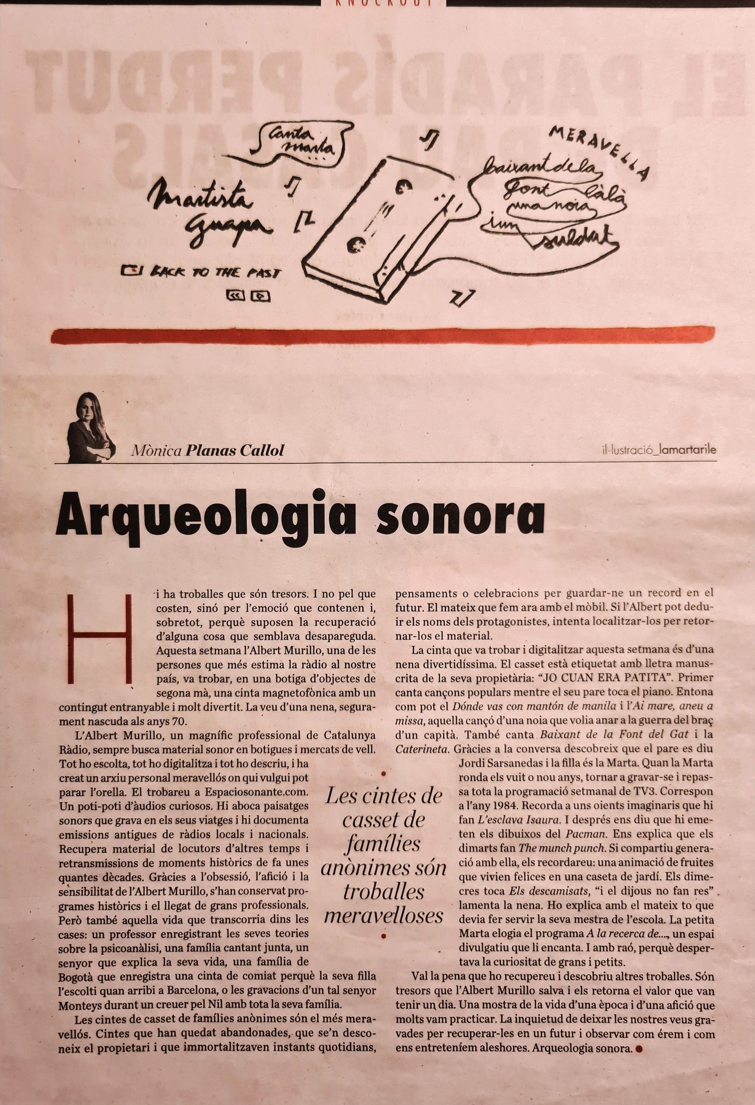 Este año también ha sido muy importante por la repercusión que poco a poco va teniendo el blog. Me hace una ilusión enorme que responsables del archivo sonoro de RNE se hayan puesto en contacto conmigo para establecer un puente de comunicación de todo lo que encuentre de la emisora pública estatal. Me da una alegría enorme constatar que han podido recuperar fragmentos que ellos no tenían. En este sentido, recordar que continuo pasando todo el material que encuentro de Catalunya Ràdio a su archivo y me encantaría que los responsables de los archivos sonoros de la SER, COPE y ONDA CERO se pusieran en contacto conmigo para colaborar también con ellos.