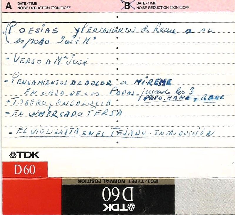 Aquí empieza la parte importante del contenido de la cinta. Son versos de Reme dedicados a su esposo. Son cortas.