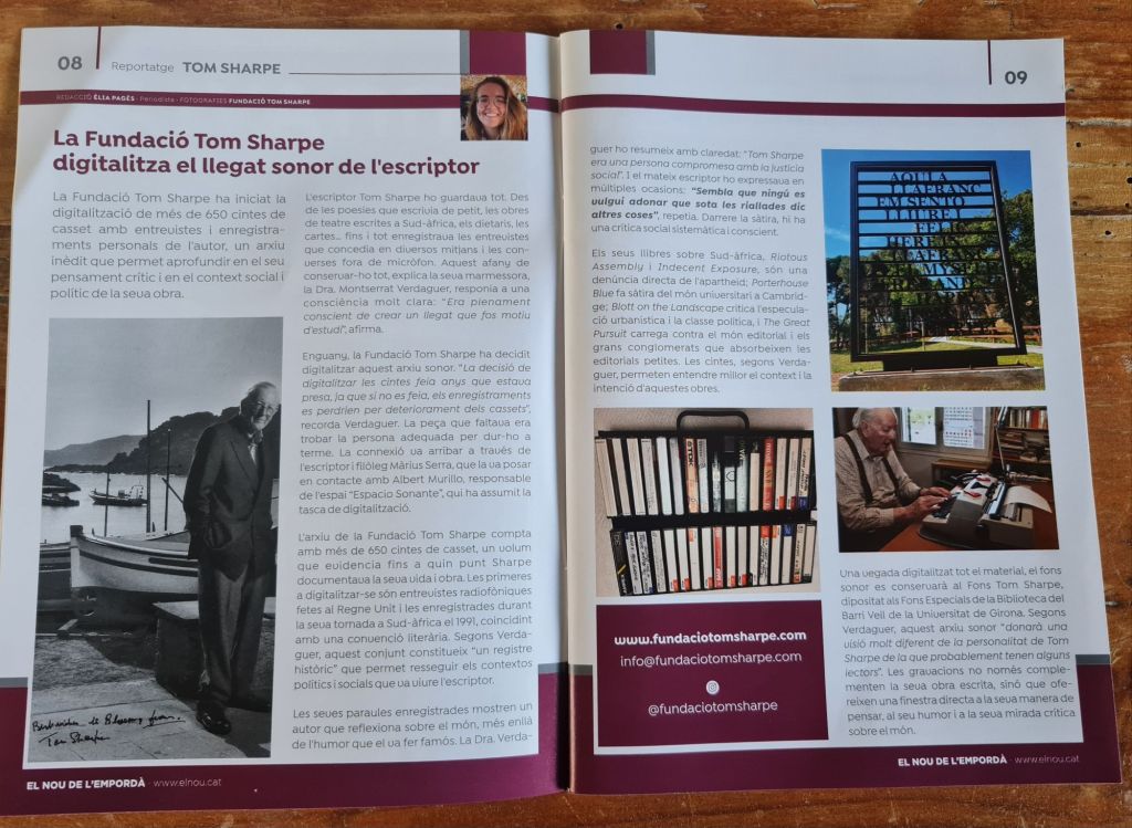 Avui he fet entrega a Montserrat Verdaguer, marmessora de La Fundació Tom Sharpe, de la segona tongada de digitalitzacions de les cintes de casset amb la veu de l’escriptor Tom Sharpe.