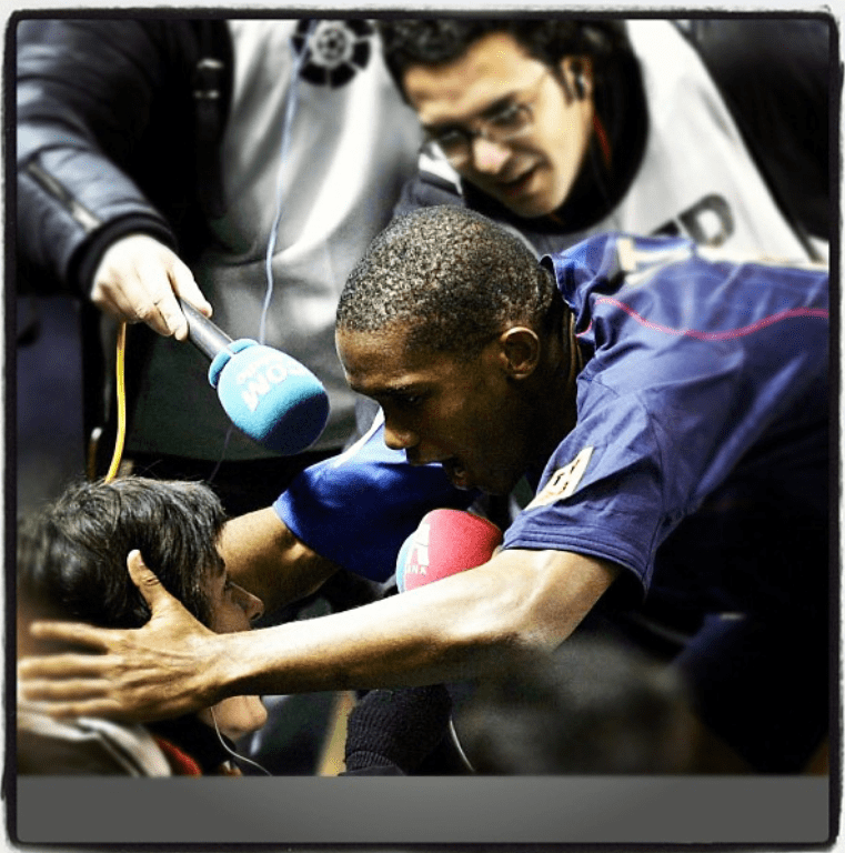 Ona Catalana | 29/01/2005 | 103.5 | Barcelona | Fragmento de la retransmisión de la jornada 21 de la Liga de Futbol 2004/2005 entre los equipos Sevilla y Barcelona. La narración del primer gol de Eto’o narrada por el periodista Josep Maria Déu se interrumpe por un momento único: el beso que el futbolista Samuel Eto’o le da a la periodista de campo Sandra Sarmiento. En este corte se escucha el momento y todo lo que acontece después.