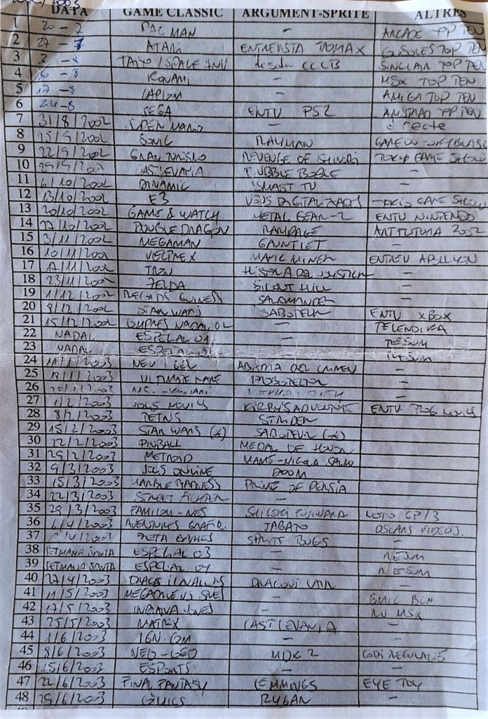 Aquesta pàgina recuperarà durant aquest 2022 tots el programes, fins ara mai publicats, d’Ona Catalana i que són 125 en total. Anirem publicant moltes fotografies i algunes entrevistes actuals als qui van ajudar a fer créixer un programa que en els seus inicis tenía un «claim» que el definia i que va ser escrit per una de les persones de l’equip del programa, Xavier Serrano: «Game Over, no s’entén res, però distreu».