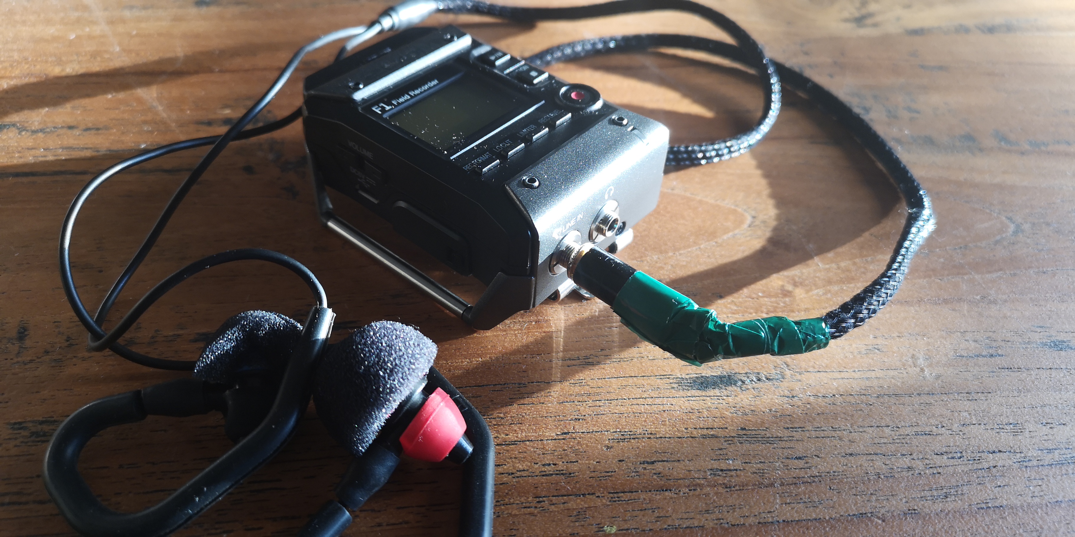 [ESP] Para las grabaciones de campo utilizo primordialmente todo este material. El multipistas Zoom F4 para cuando llevo los micros røde nt5 cardiod o audio-technica at835b hypercardiod + Rycote Super Shield Kit Large y los auriculares beyerdynamic DT 770 PRO. Los días que quiero llevar la grabadora en el bolsillo, Zoom F1 + los micros luhd binaural mics y Primo EM172 OSS. Para grabaciones binaurales utilizo Zoom H3-VR y para cuando quiero escuchar a los murciélagos llevo conmigo el Pettersson ultrasound detector D 100. También me gusta grabar con micros de contacto, hidrófonos y coil pick-up de jrf.